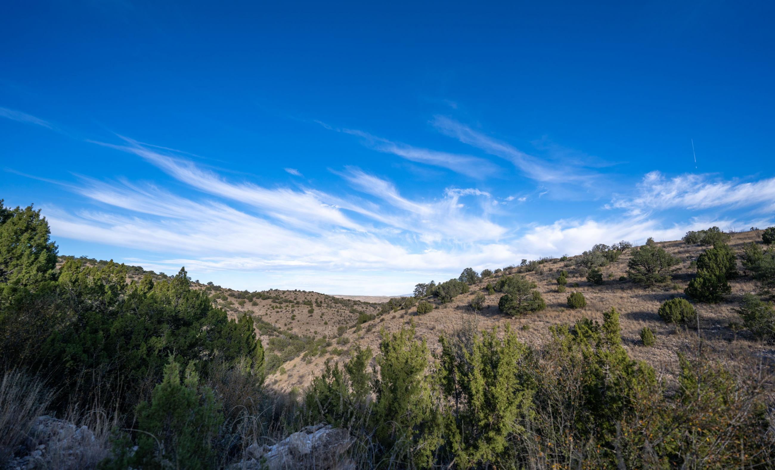 The ranch ranges from 5,100 to 5,982 feet in elevation. The lower country along the river offers shade and meadow like vegetation, while the upper reaches transition into rugged hillsides suited for wildlife and recreation. Vegetation includes productive native grasses, piñon and juniper woodland, mountain mahogany, and multiple cacti species that thrive in this region.