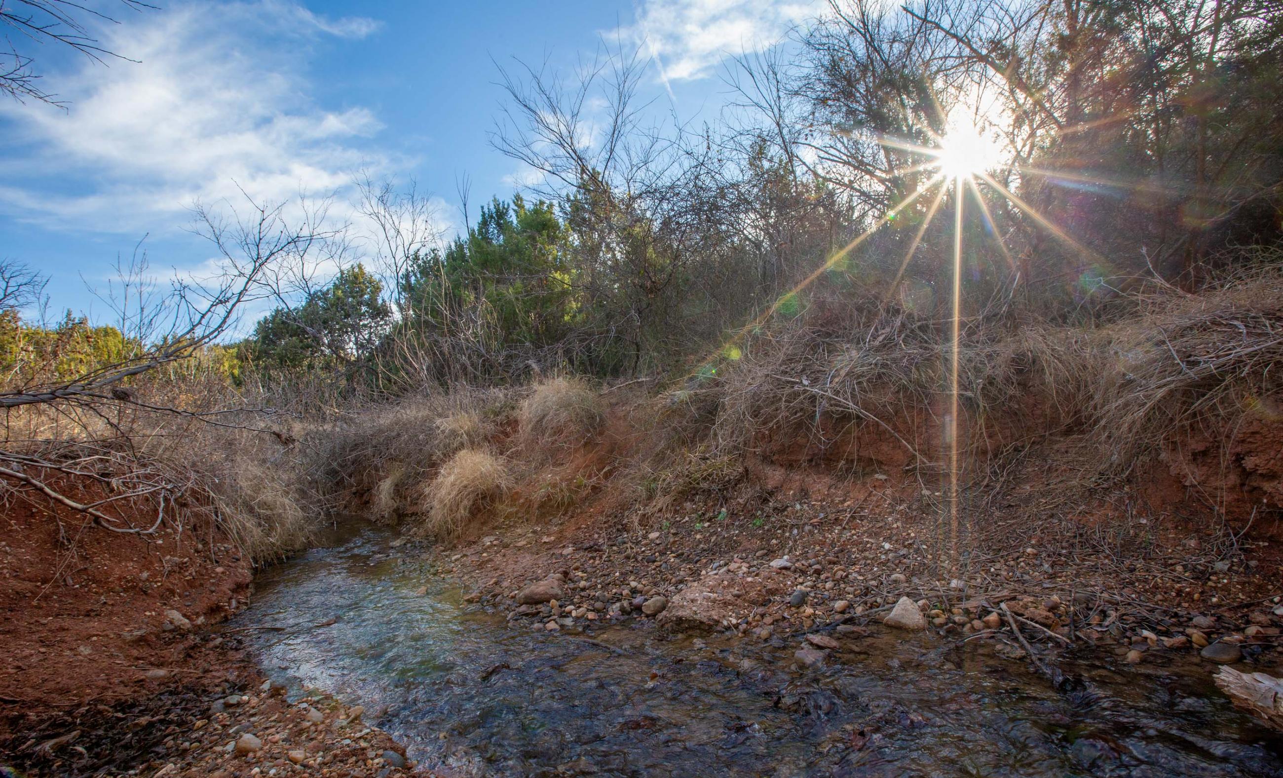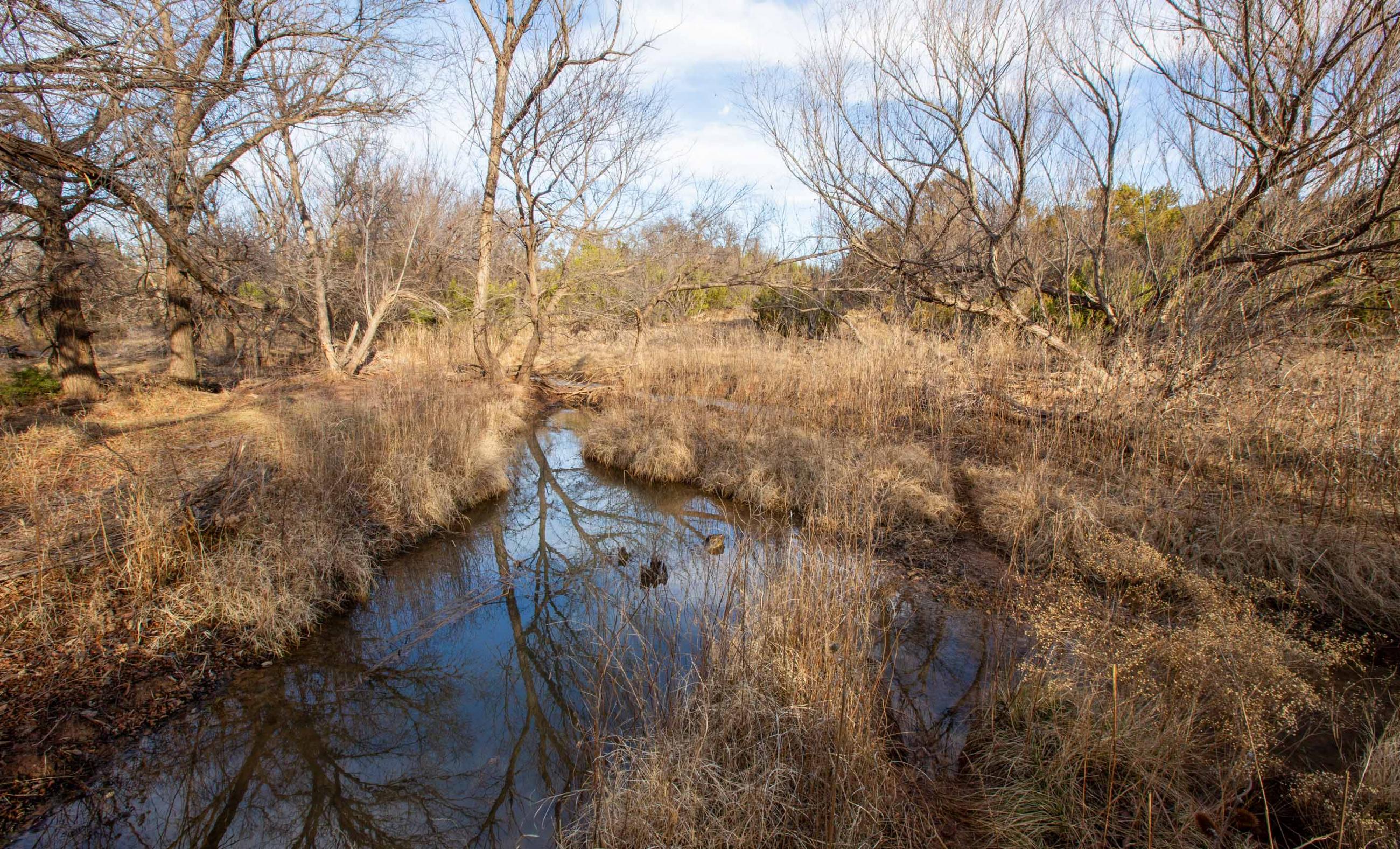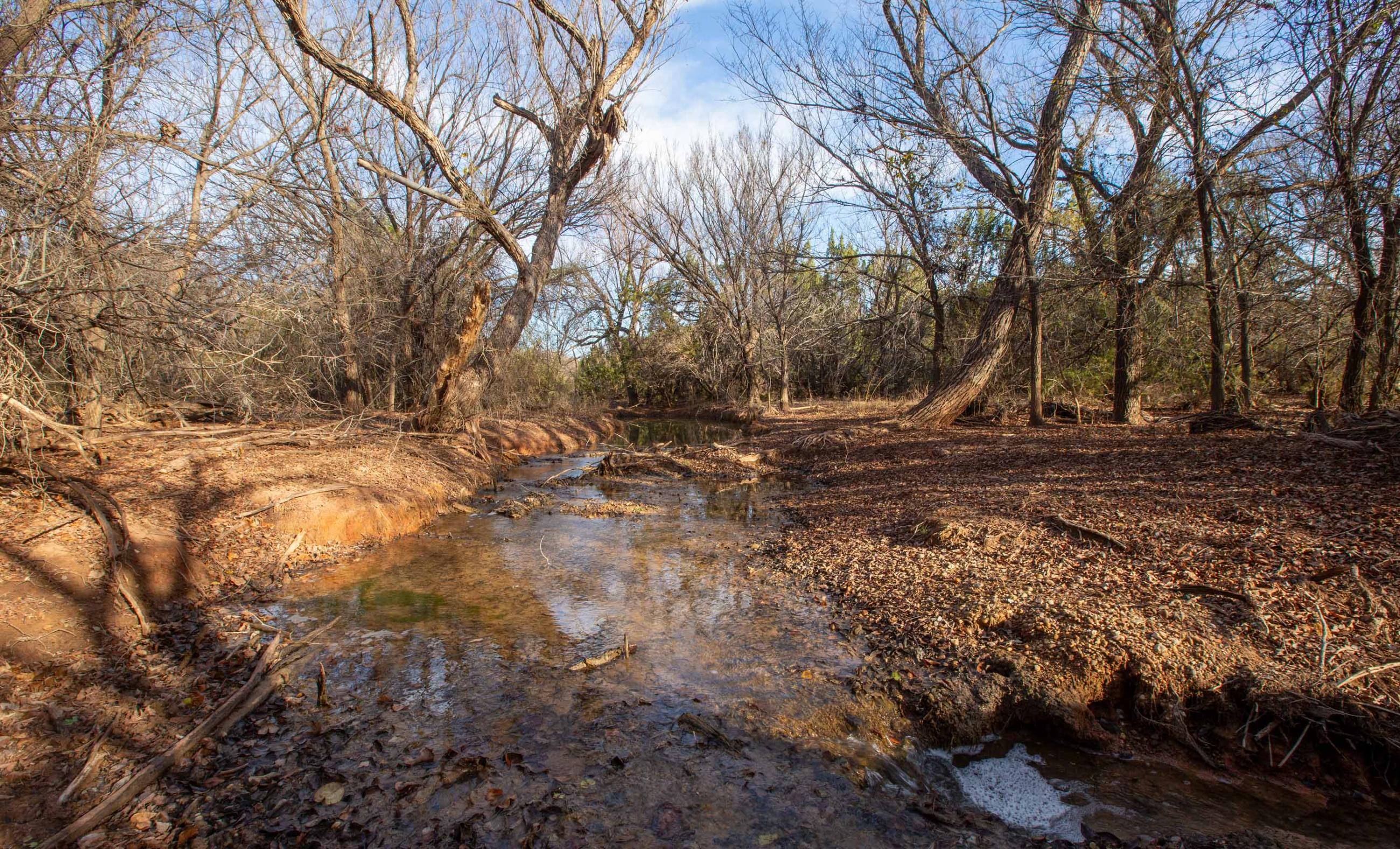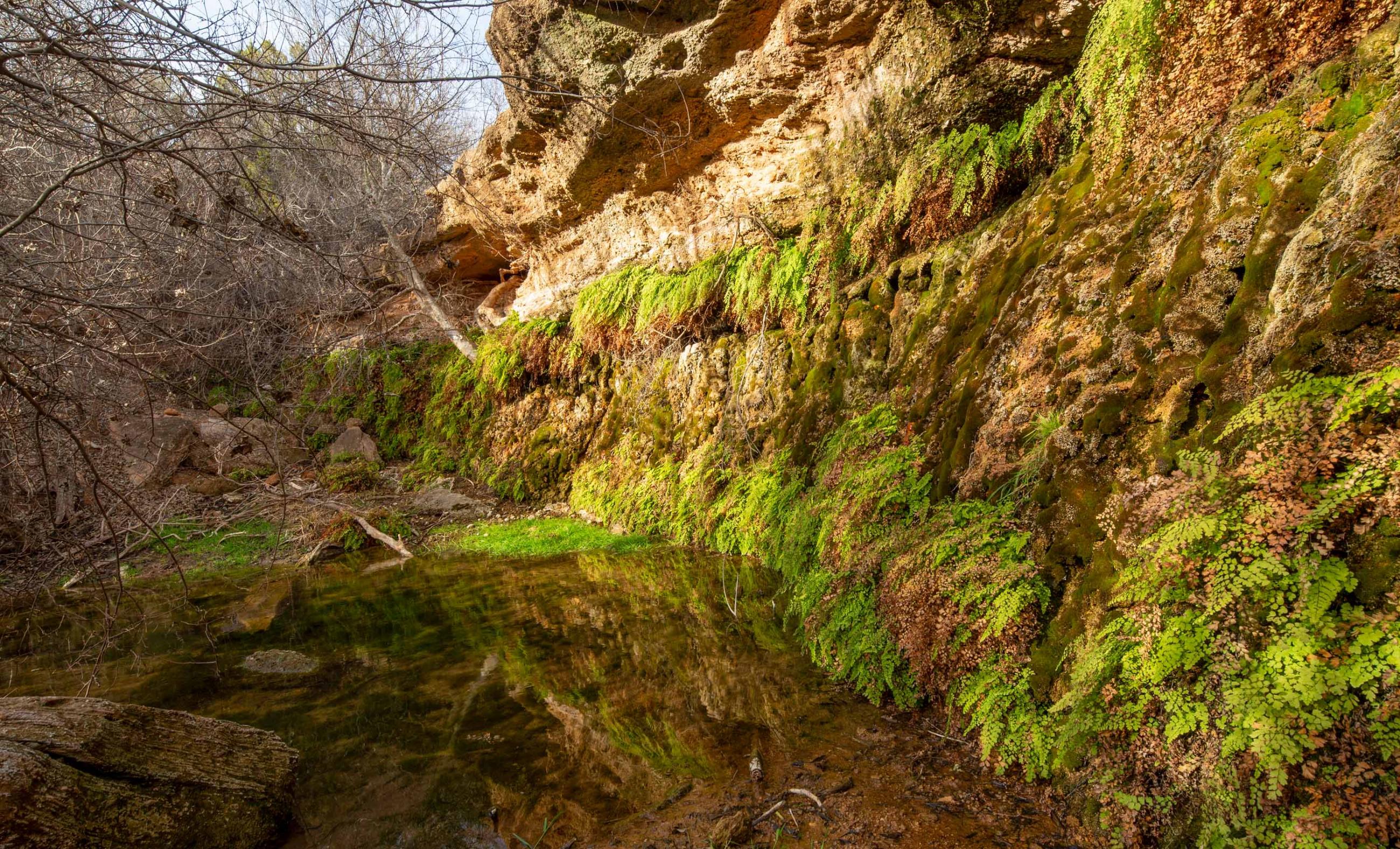 These springs provided dependable water during historic droughts, including 1902 and 1918, when cattle were driven long distances to reach reliable flow, and again during the 2011 drought, demonstrating exceptional long-term resilience. Numerous secondary seeps discharge along the creek corridor, creating shaded pools, wet banks, and continuous surface water that persists year-round.