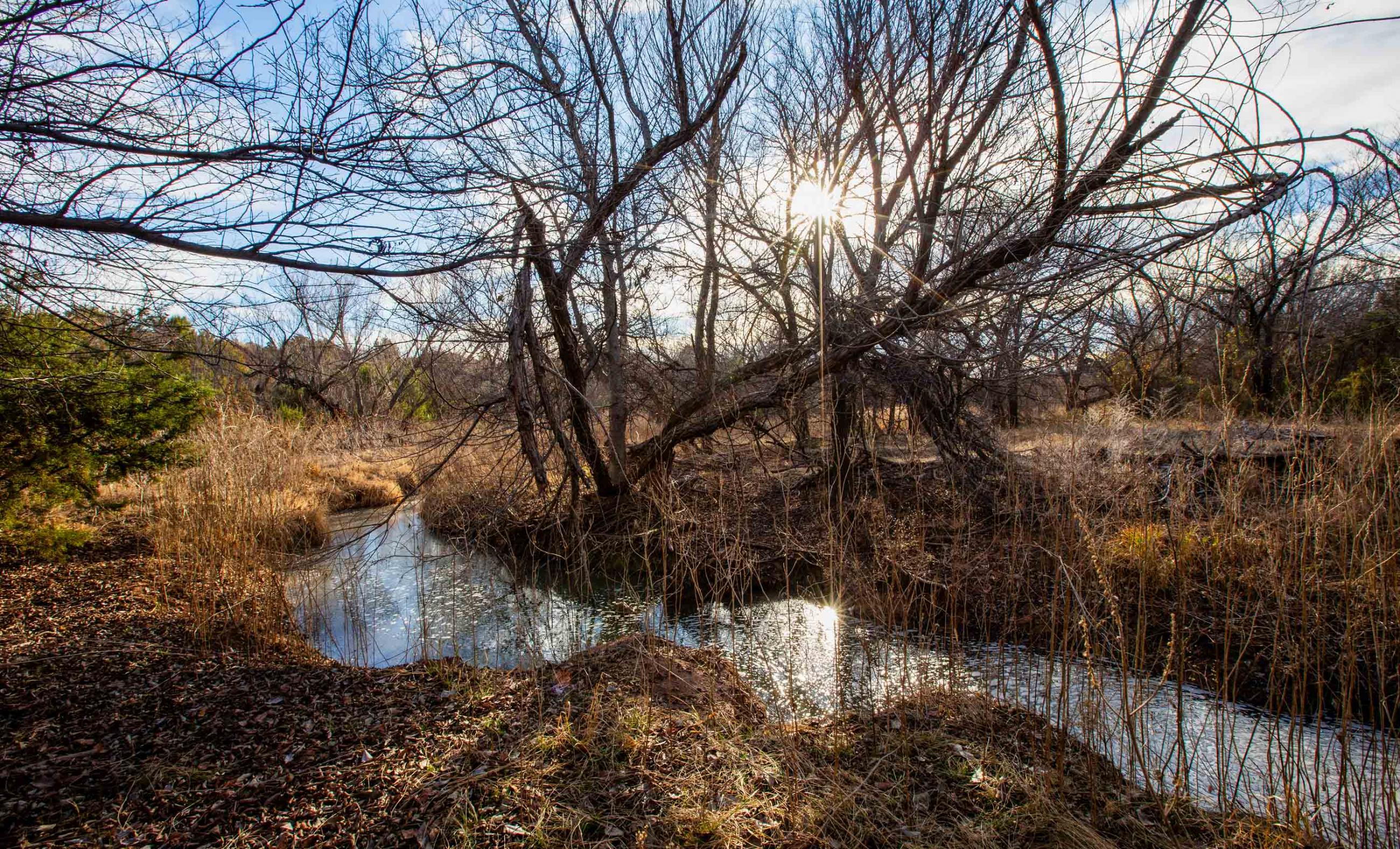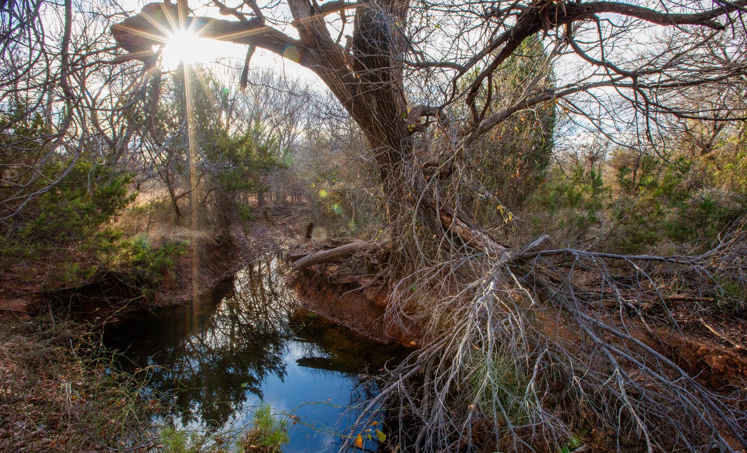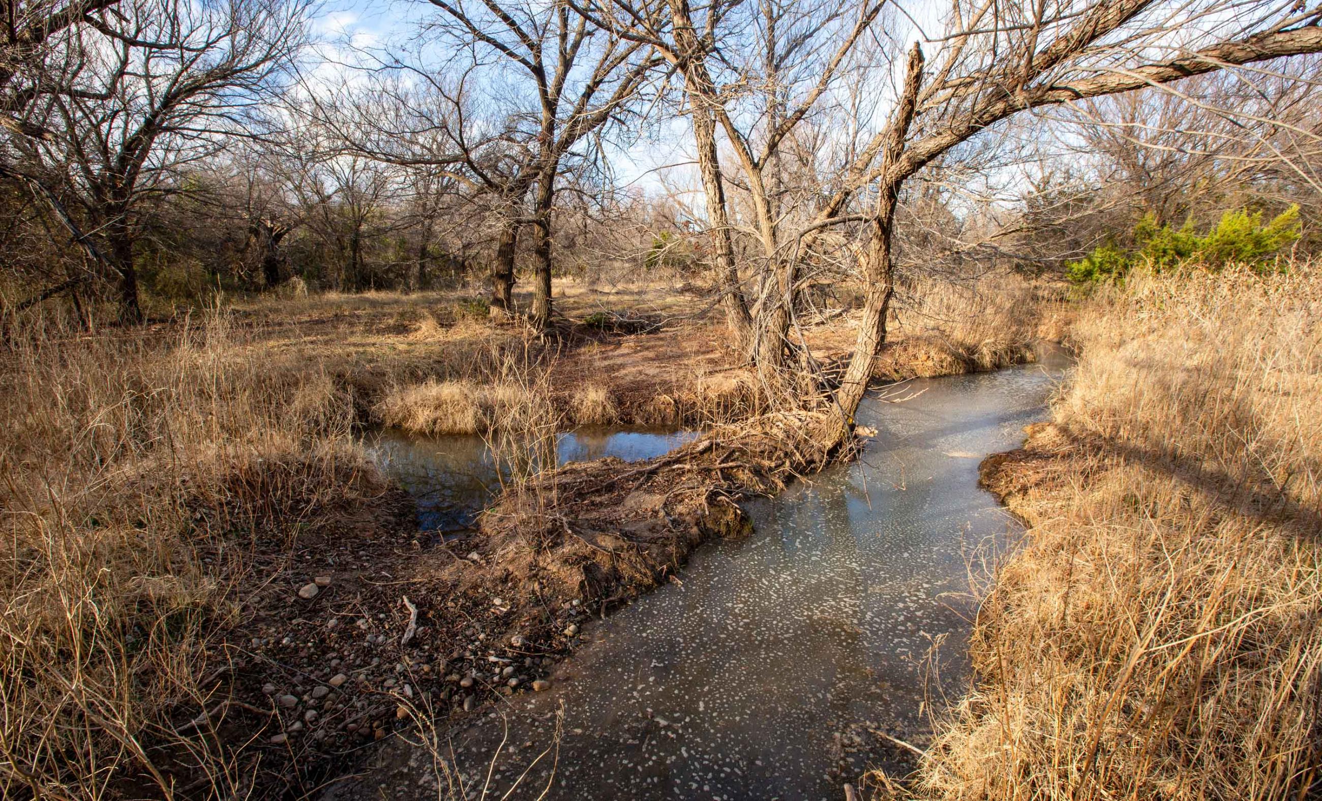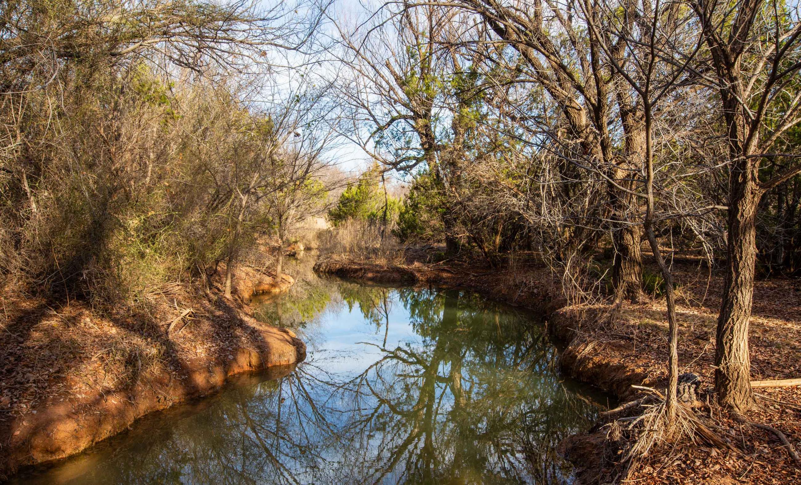 These springs provided dependable water during historic droughts, including 1902 and 1918, when cattle were driven long distances to reach reliable flow, and again during the 2011 drought, demonstrating exceptional long-term resilience. Numerous secondary seeps discharge along the creek corridor, creating shaded pools, wet banks, and continuous surface water that persists year-round.