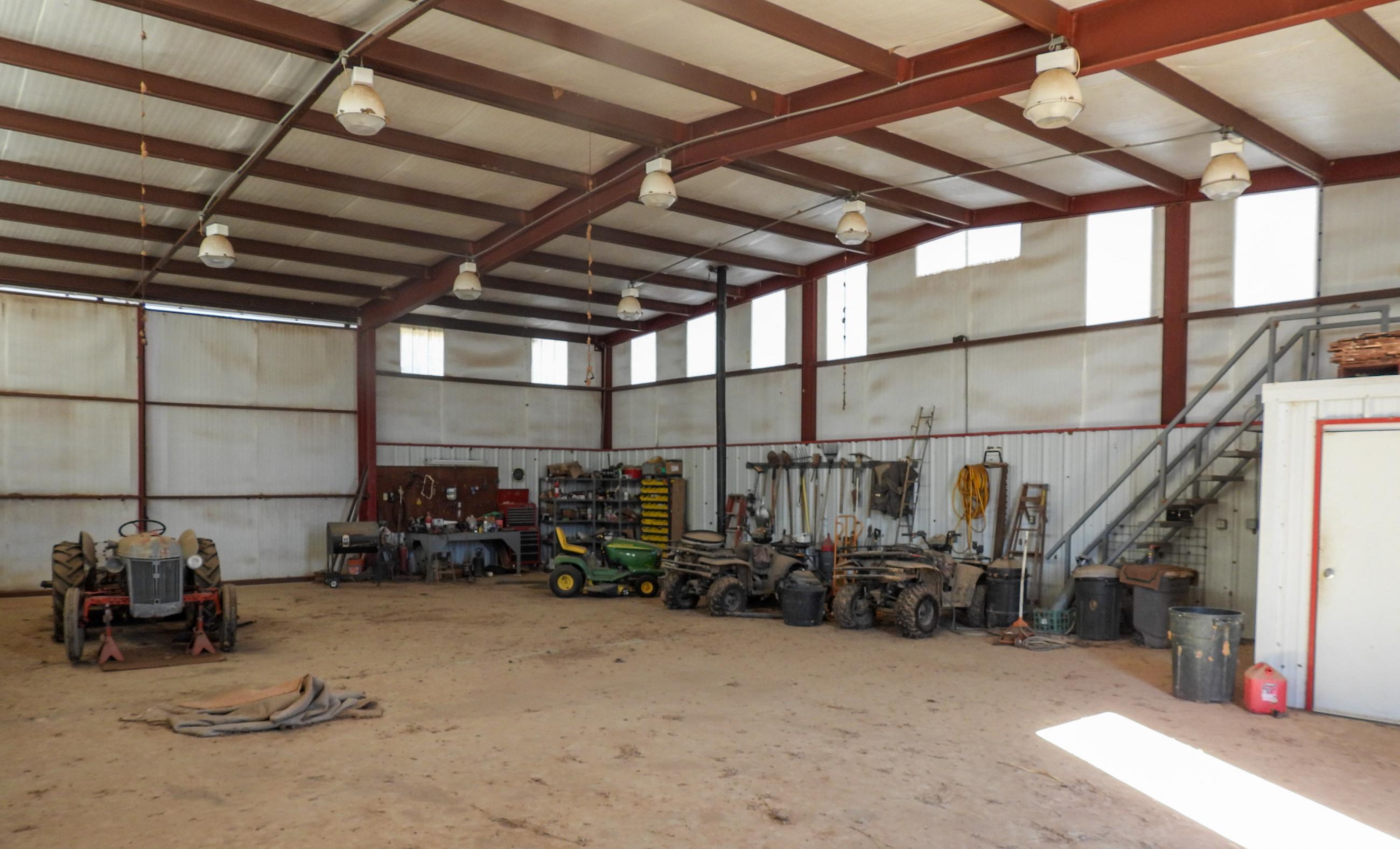 The ranch is improved by a 1,080± sq. ft. barndominium that contains two bedrooms and one bathroom. A small kitchenette and open living area round out this usable living quarters.