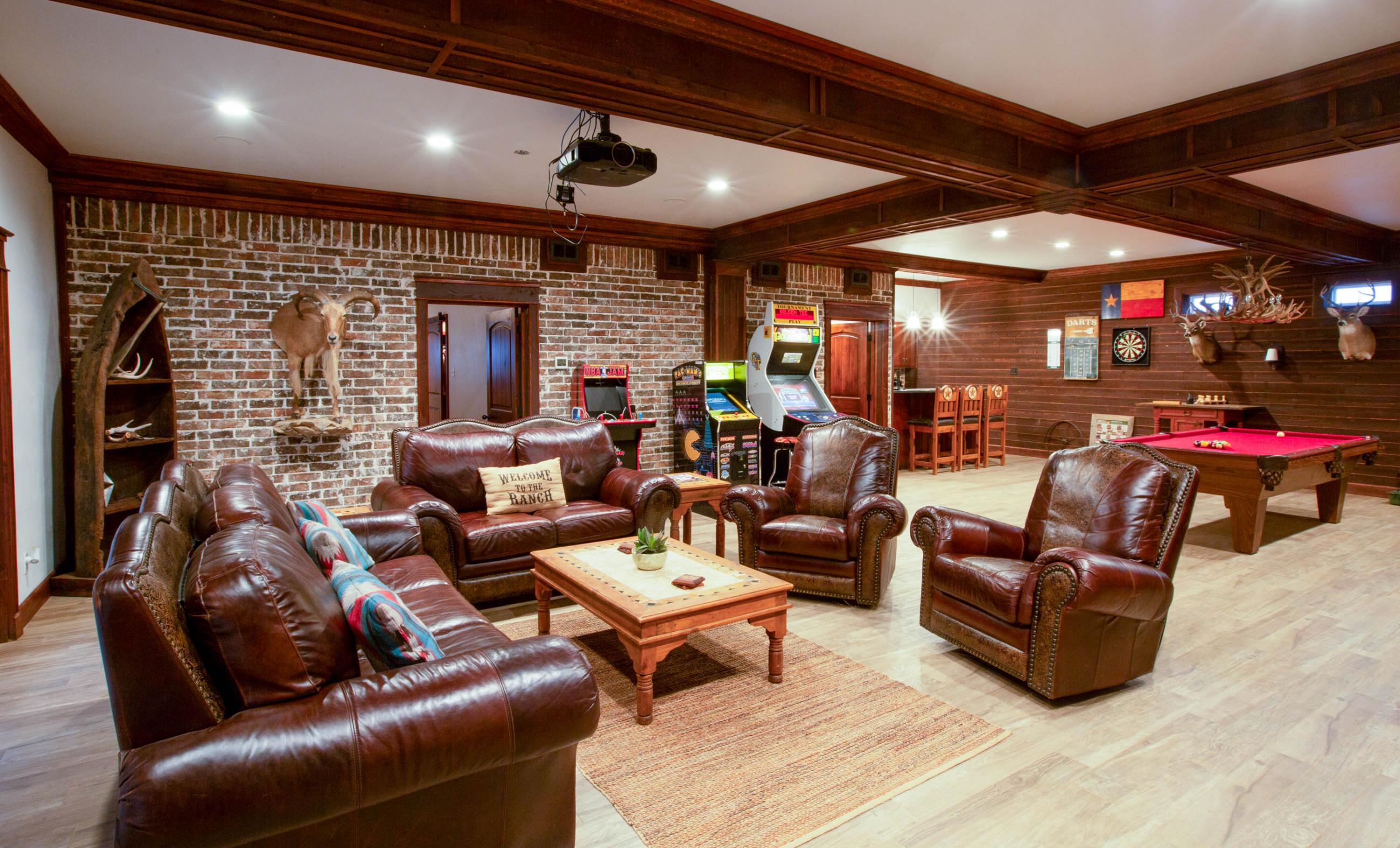 The headquarters is a very upscale place to call home. Two main houses sit side by side. The master suite side has game room downstairs and two bedroom suites on top with two king beds.