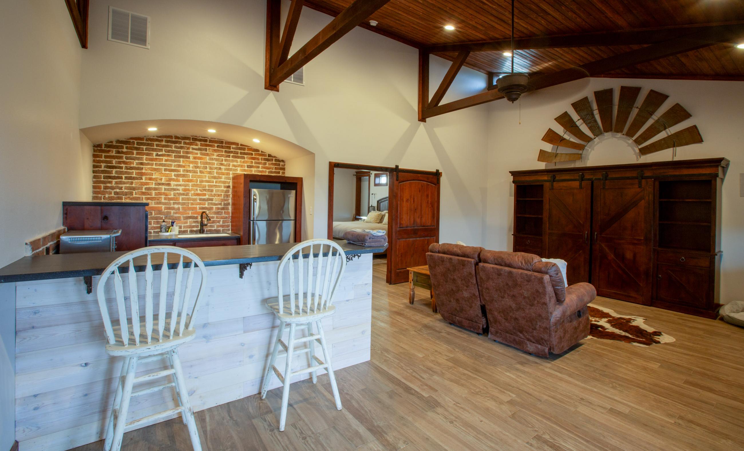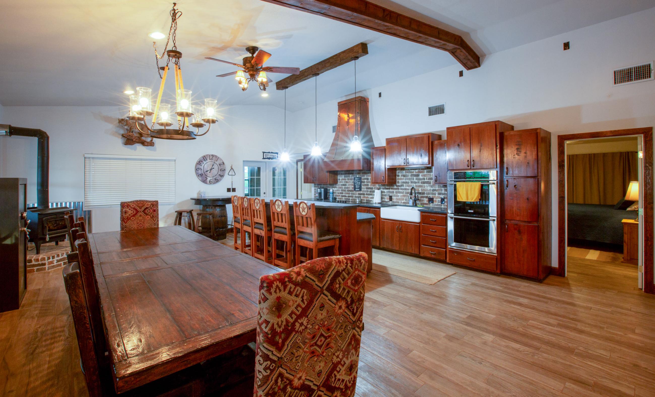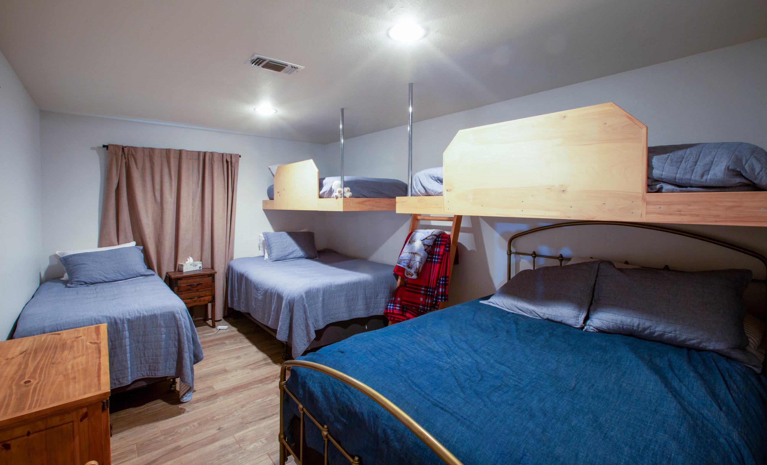 The other ranch house or the kitchen has 5 twin beds, 2 queen beds, and bunk room have 5 additional single beds. The family has slept as many as thirty guests at one time.