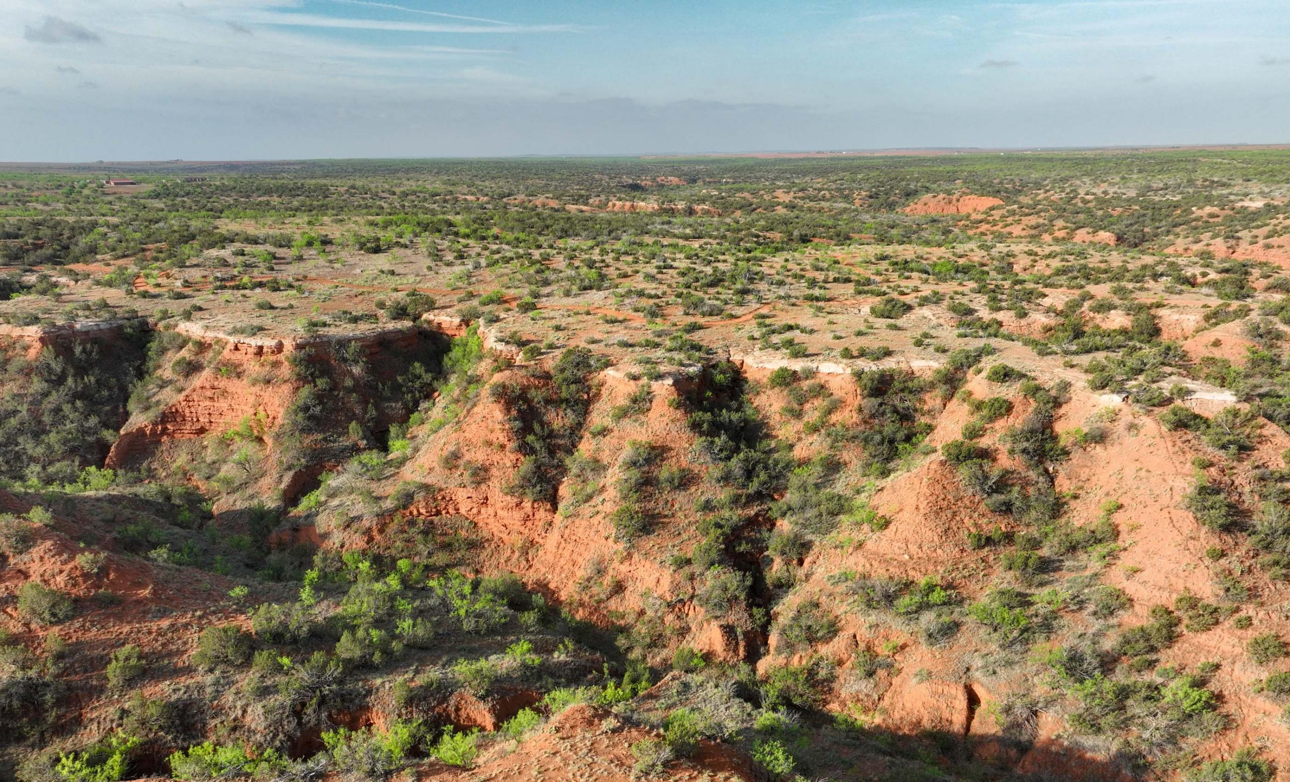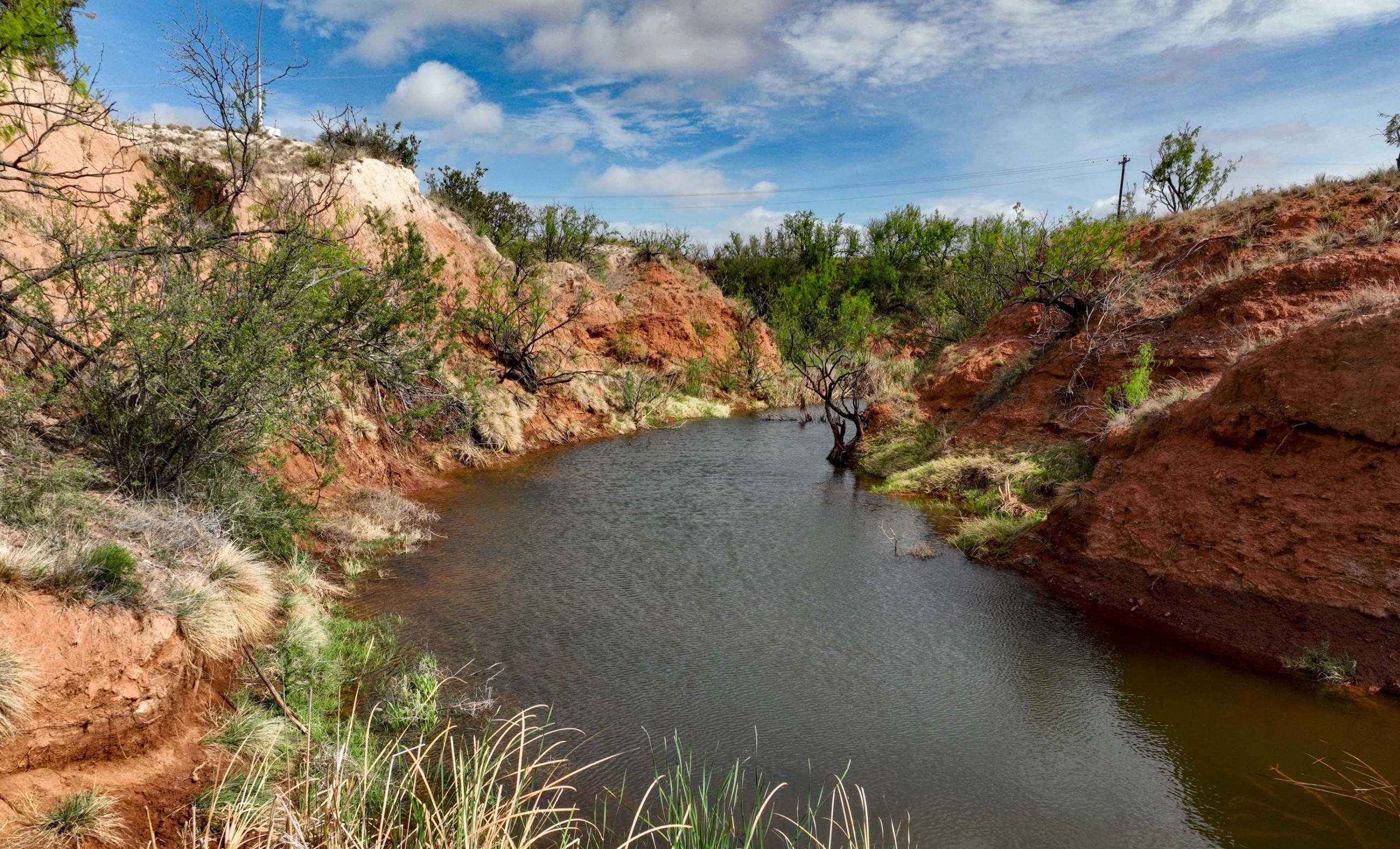 The ranch is distinguished by its striking natural beauty, highlighted by expansive bluff canyons, 8–9 seasonal dirt tanks, and natural springs that emerge during the cooler months. These tanks are evenly distributed throughout the ranch to keep wildlife adequately watered.